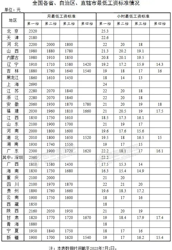 人社部官网近日公布了全国各省、自治区、直辖市最低工资标准情况(截至2023年7月1日),其中浙江为2280元。数据显示,15个省份月最低工资标准在2000元及以上,上海月最低工资标准继续稳居全国首位。 上海月最低 ...