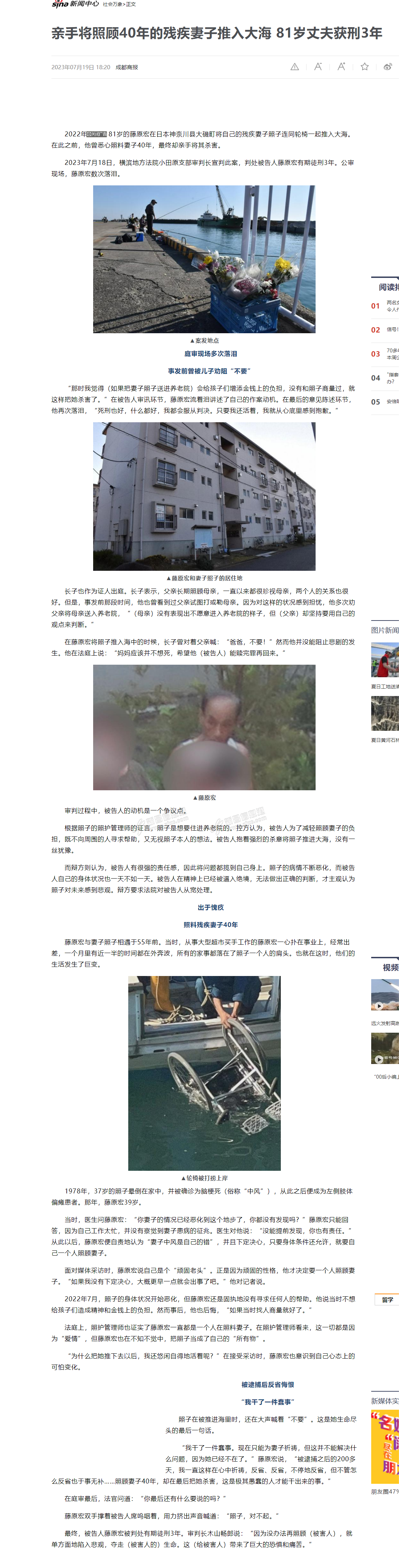亲手将照顾40年的残疾妻子推入大海 81岁丈夫获刑3年_获刑_新浪网