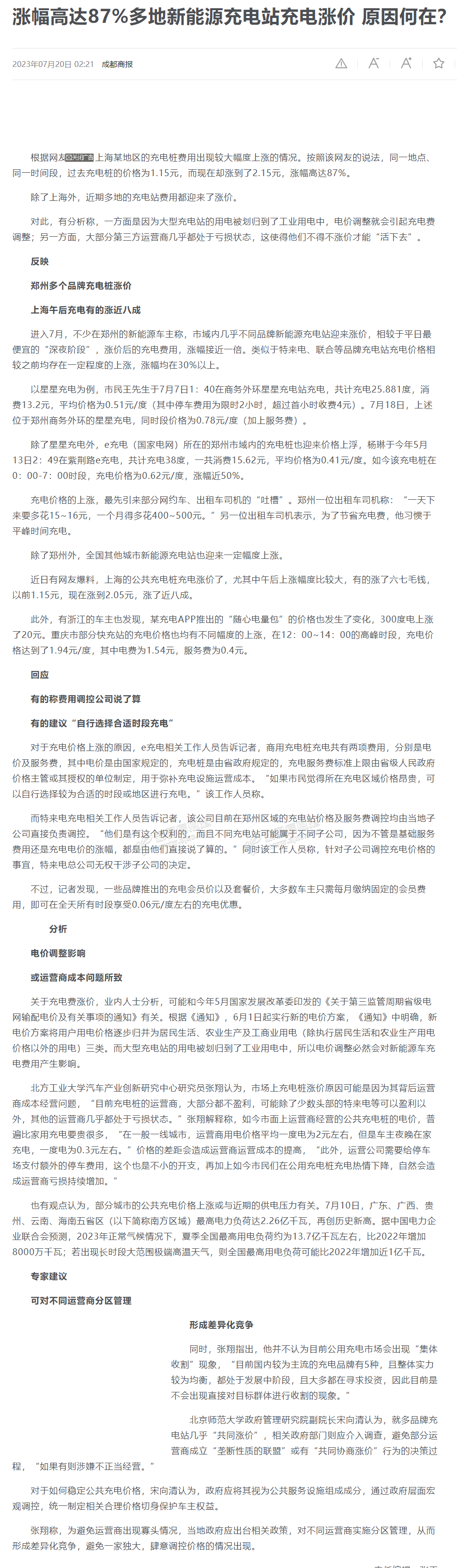涨幅高达87%多地新能源充电站充电涨价 原因何在?_新浪新闻
