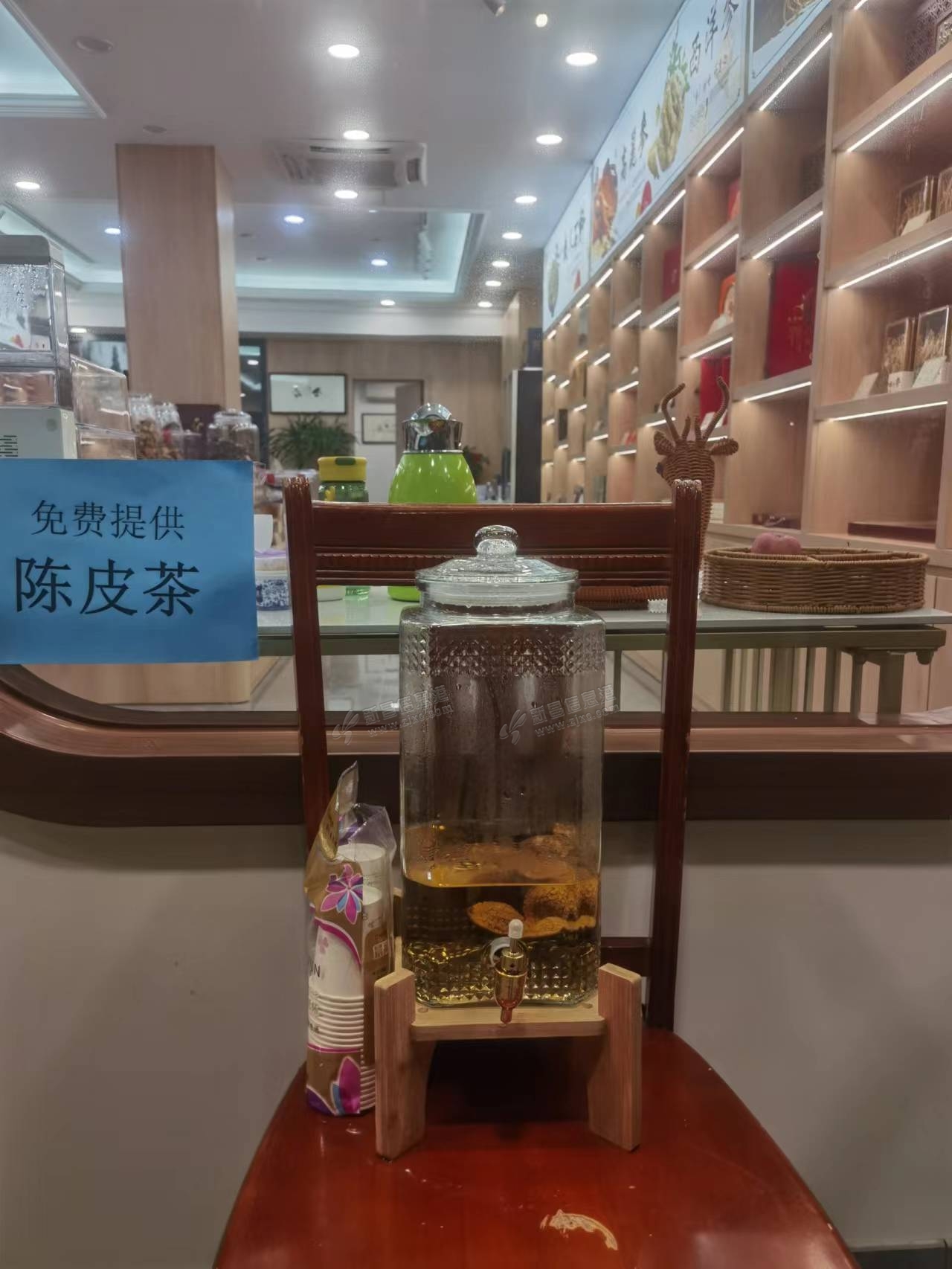 | 我刚去他们药店买药,药店门口没有看到免费陈皮茶,打听了才知道是在隔壁的年丰参茸商行,两家店是同一个老板 |