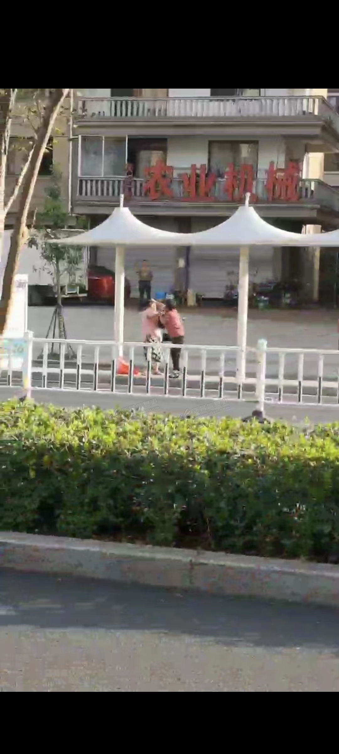 7点钟两个阿姨在青山头公交车站打架,打了很久。一开始就在吵架了,吵着吵着就打起来