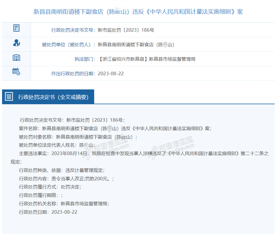 | 连地址、详细店名都没有,算啥公示呀……还有,罚款200元,是不是在鼓励人家以后搞得再凶一点? |