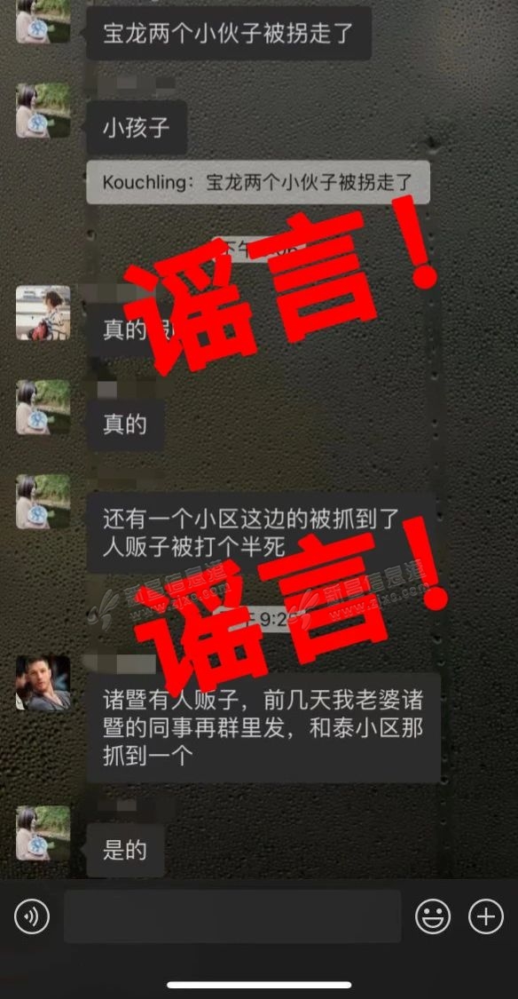 近日,抖音和微信群出现“宝龙两个小孩子被拐走,还有一个小区这边的也被抓到了。人贩子被打个半死”“和泰小区门口抓到一个人贩子”等内容。经警方调查,诸暨范围内未发生此类案事件。 警方提醒 公安 ...