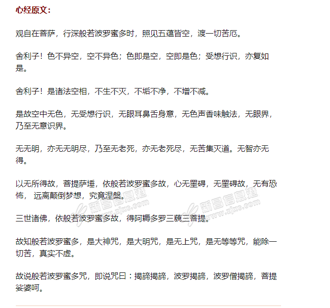 | 3.心经的缘起。我国的大部分佛经,都是世尊所说,唯一一部由中国人所说的佛经叫《六祖坛经》,六祖慧能也享受了一把佛祖的待遇,所说的话被弟子记录整理,直接成了一部经。心经也有点特殊,是由观音菩萨代佛祖讲解。 |