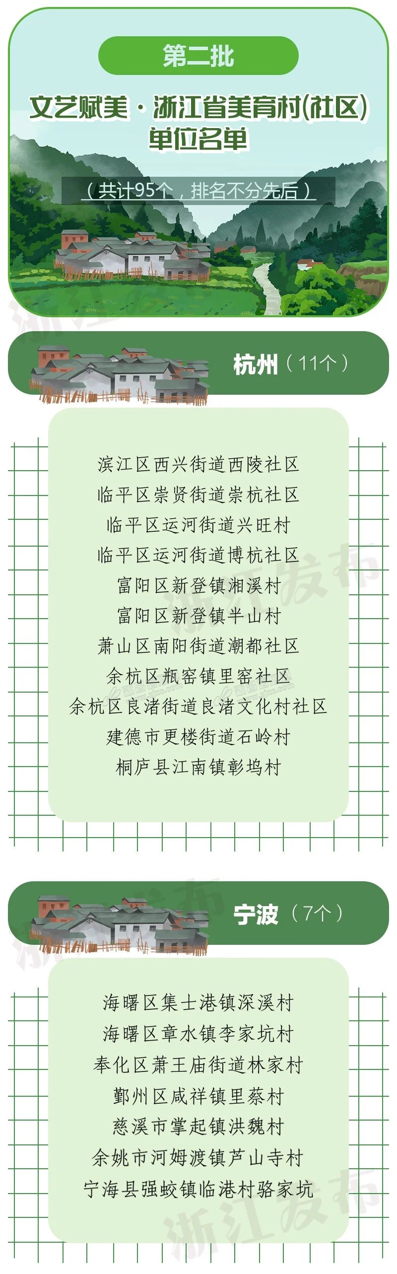 近日,经地区推荐、专家评审、媒体监督等程序,省文化和旅游厅确定杭州市滨江区西兴街道西陵社区等95个村(社区)为第二批文艺赋美·浙江省美育村(社区)评审合格单位。其中,我县小将镇里小将村入选。一起来看↓ ...