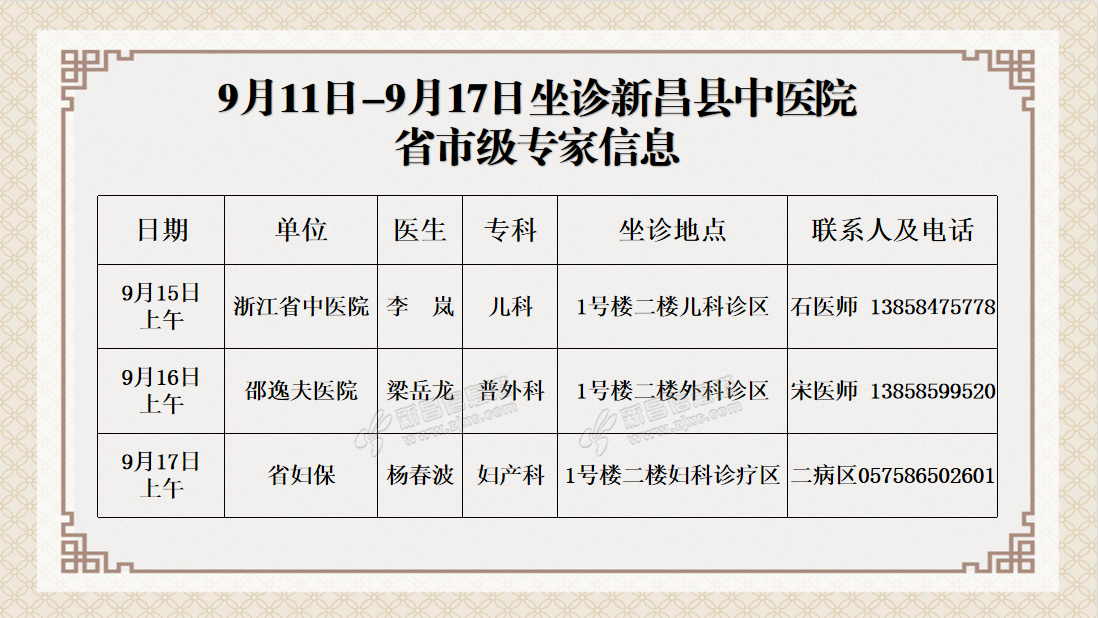 温 馨 提 示 新昌县中医院连贯医疗服务中心预约电话0575-86502366 门诊时间:上午08:00——11:30 下午13:30——17:00 急诊内、外科及发热门诊24小时开放。 来源:新昌县中医院 ...