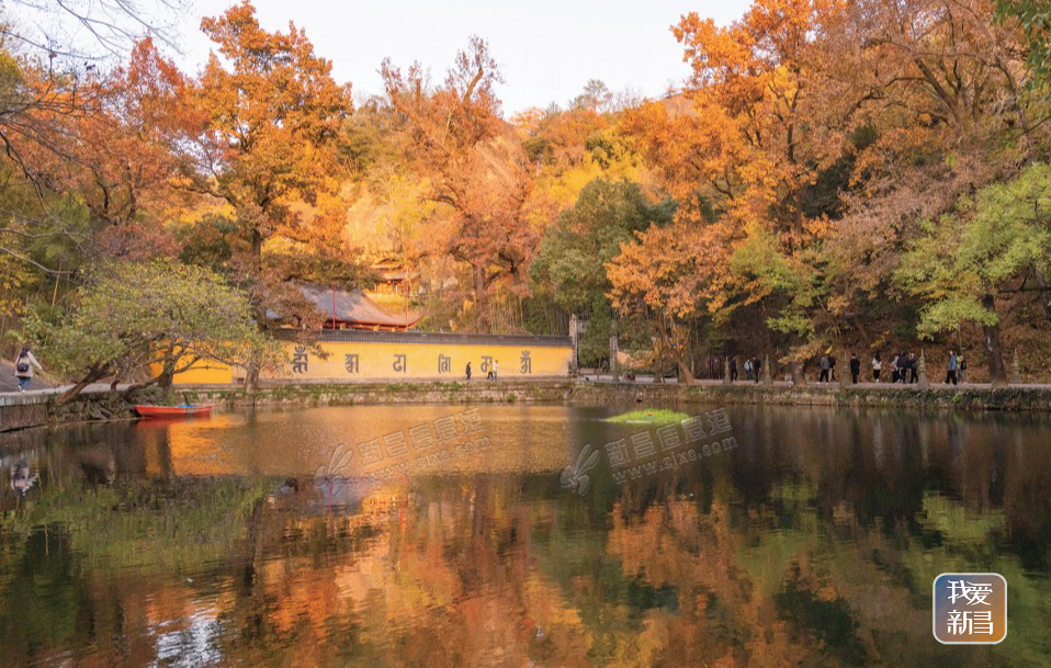 时过立冬,大佛寺景区的红枫迎来最灿烂的颜色,百年枫香和法国梧桐树叶呈现出不同层次的暖色,倒映在碧波荡漾的放生池水面,游客行走其中,仿佛进入梦幻的画境。