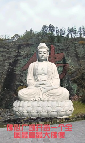 | 佛心广场的位置高度不够,岂能造全国最高石头佛?般若谷后面的旗山是大佛寺最高峰,旗山和磕山才可以造最高大佛。金甬铁路新昌段首倡人早就提出这个规划,但目前,不许造10米以上的露天大佛 |
