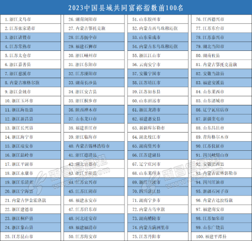 12月22日,竞争力智库、北京中新城市规划设计研究院等机构联合发布了《中国县域共同富裕监测报告2023》,揭晓了首届“中国县域共同富裕指数前100名”。 《报告》认为,要以县域为地域单元推进共同富裕。共同富裕 ...