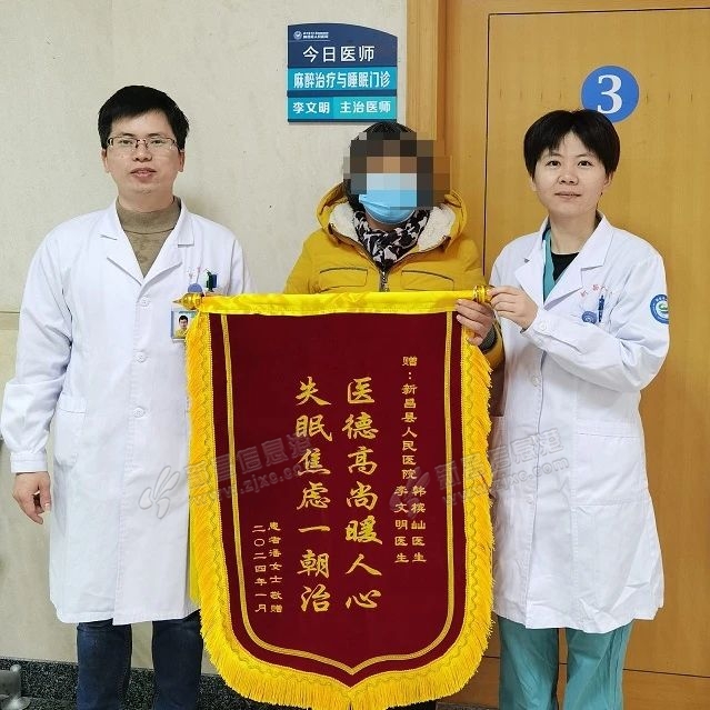近日,潘阿姨把一面写有“医德高尚暖人心,失眠焦虑一朝治”的锦旗送到了新昌县人民医院麻醉科李文明医师和韩槟屾医师的手上,感谢他们解决了困扰自己十多年的失眠问题。 图片来源于网络 在治疗期间,李医 ...