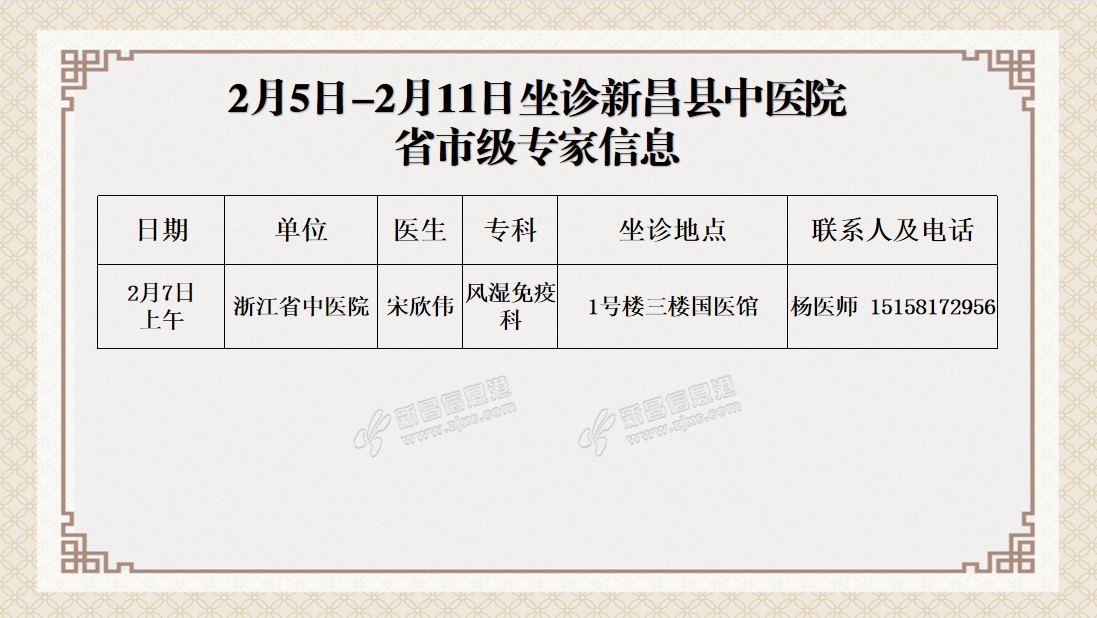 温 馨 提 示 新昌县中医院连贯医疗服务中心预约电话0575-86502366 门诊时间:上午08:00——11:30 下午13:30——17:00 急诊内、外科及发热门诊24小时开放。 来源:新昌县中医院 ...