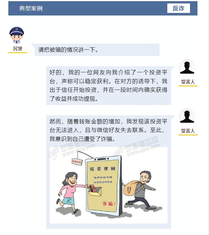 岁末年初,不法分子们蠢蠢欲动,诈骗方式和手段不断翻新,广大居民应谨防虚假投资平台诈骗,莫贪高额回报,守护好自己的“钱袋子”。 警方提醒 1.理财投资必须选择合法正规的平台和机构,不要轻易相信 QQ、 ...