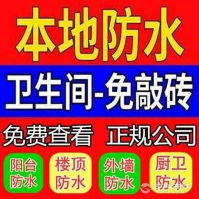 本地诚信防水补漏免砸地砖维修卫生间 阳台 墙面起皮 厨房 卧室 飘窗 外墙 房顶 水池 电梯井 伸缩缝 厂房等各种疑难杂症防水等:配有先进的堵漏防水施工机械设备。率先引进国外先进的带压抗渗抗震动的防水堵漏新技术。 ...