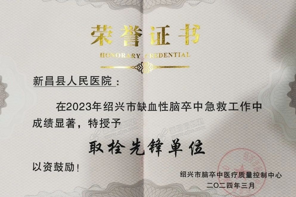 近日,新昌县人民医院在2023年绍兴市缺血性脑卒中急救工作中脱颖而出,连续两年荣获绍兴市“取栓先锋单位”称号,神经外科逯艳松荣获绍兴市“取栓先进个人奖”。这份殊荣是对医院近年来在卒中防治方面不断探索、改进 ...