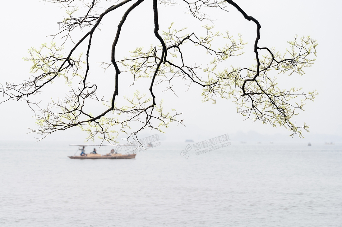 绿芽与孤舟齐欢,湖水共苍天一色 |