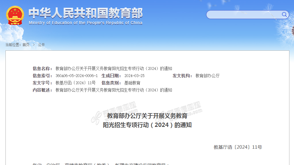 “掐尖招生”“暗箱操作”……注意教育部首次开展专项行动严查!严查这些行为! 4月11日,教育部发布通知,将开展2024年义务教育阳光招生专项行动。这是教育部首次以专项行动的方式,对全国义务教育招生作出全面系 ...