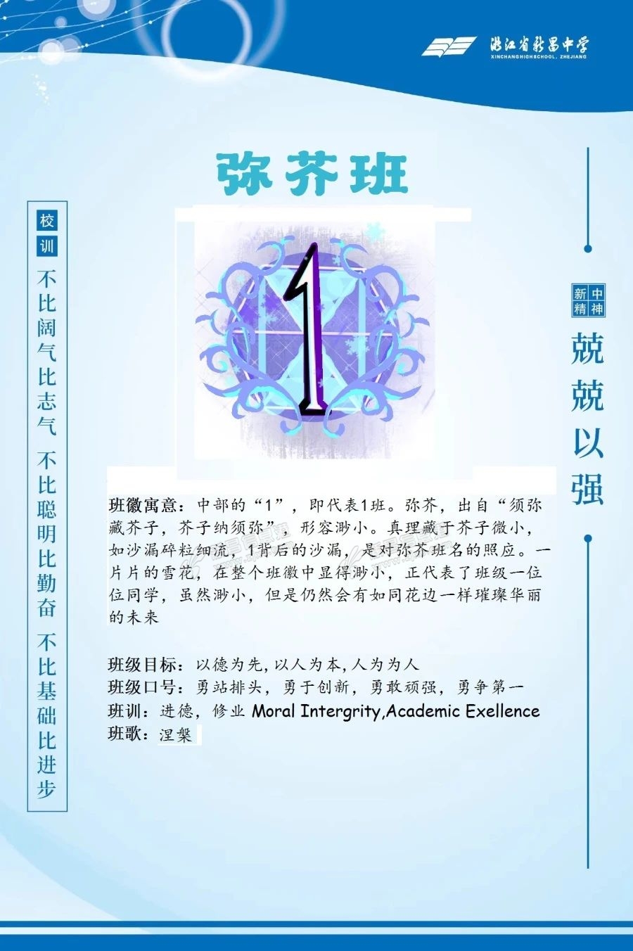 以美化人 以文育人我校开展班级特色文化建设评比活动 2024年4月15日新昌中学高一年级举行了“我的班级我做主”班级特色文化建设评比活动。此次活动旨在通过班级文化建设,增强学生们的集体荣誉感,提升 ...