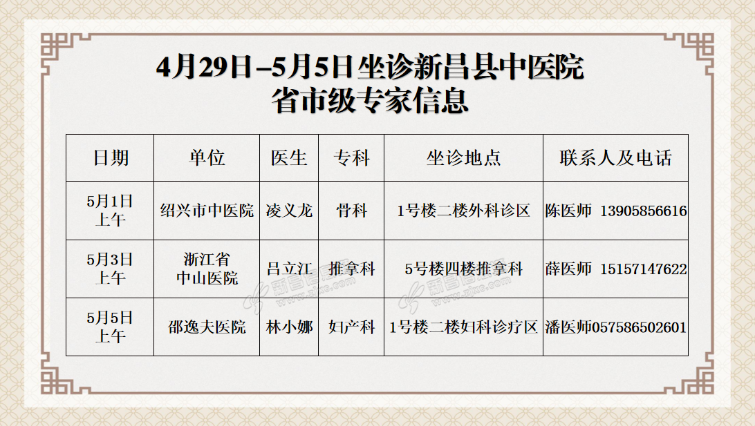 温 馨 提 示 新昌县中医院连贯医疗服务中心预约电话0575-86502366 门诊时间:上午08:00——11:30 下午13:30——17:00 急诊内、外科及发热门诊24小时开放。 来源:新昌县中医院 ...