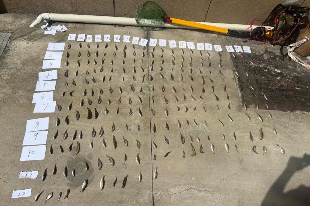 | 标点符号:禁渔期内严禁非法捕捞但仍有人贪图一时口腹之欲顶风作案、下河电鱼这不仅会严重破坏水域生态系统也对人身安全造成巨大风险隐患最终将自己“捕”入“法”网电鱼人你还不停手吗? |