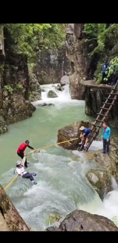 e游网 发表于 2024-6-3 13:49 应该是一根绳子是两头固定的,另外一根拴在过河人的身上,连人带绳牵引过河。 过河时把女队友的背包卸下,这样会减少负重。那头拉绳的香烟霉霉,显然轻敌了,不够重视。 户外要敬畏自然 珍惜生命。 |