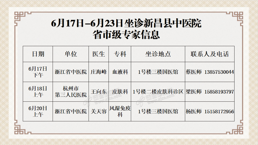 温 馨 提 示 新昌县中医院连贯医疗服务中心预约电话0575-86502366 门诊时间:上午08:00——11:30 下午13:30——17:00 急诊内、外科及发热门诊24小时开放。 来源:新昌县中医院 ...