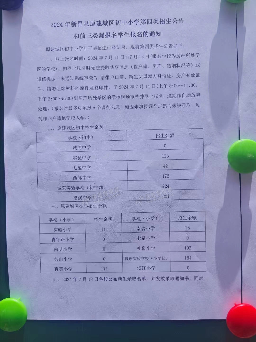 无户有房的第四类家长注意了,各学校的招生余额来了,别错过报名时间