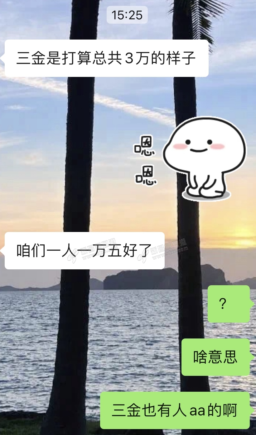 | 马善被人骑,人善被人欺,吃饭AA是小钱,楼主不在乎,但是三金也AA,就有点不对了,以后还会酒宴AA,房子AA,车子AA,结果你生孩子他不给你AA,让你自己生,生出来的孩子也不给你A了,都随他姓了。如果你觉得太吃亏了,这婚可以不结,结婚后你会更亏。 |