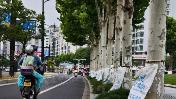 连日来,绍兴新昌县城投集团的工作人员为城市主干道上的行道树挂上一个个白色“水袋”,以滴灌的方式为为绿化树木持续补充水分。据了解,这种为城市绿植“解渴”的方式在新昌县已经实施三年,不仅可缓解高温天气 ...