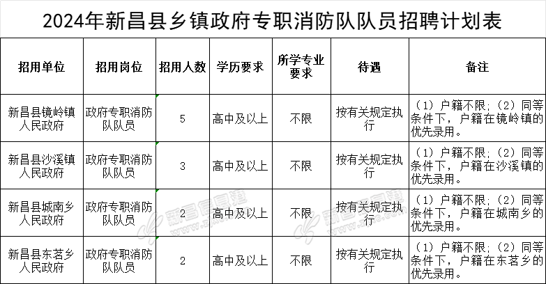 2024年新昌县公开招聘乡镇政府 专职消防队队员公告 为满足我县补充乡镇政府专职消防队队员的需要,根据《新昌县机关事业单位公开招用编外用工实施办法(试行)》(新委办〔2013〕133号)文件精神,决定组织开展2024年 ...