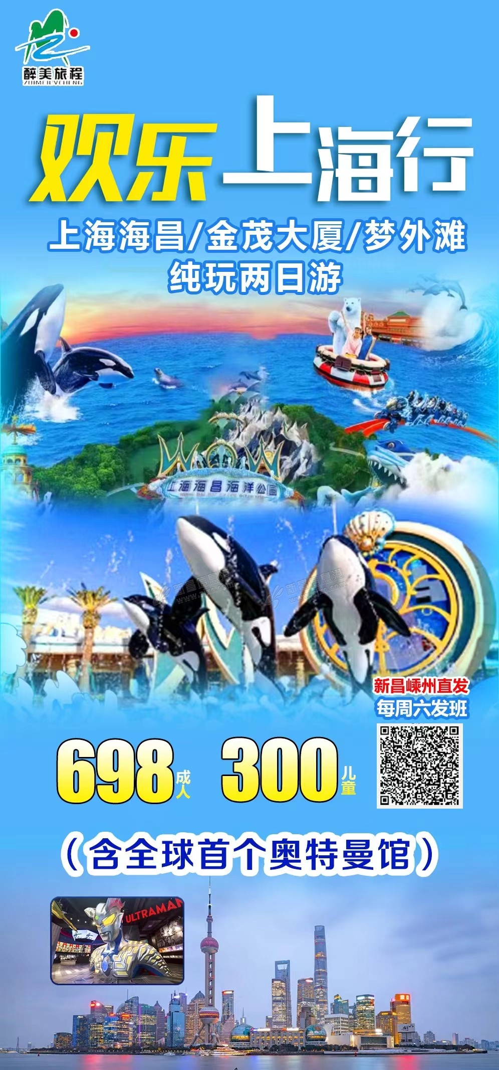梦幻魔都上海纯玩二日游 上海海昌海洋公园 奥特曼主题乐园 上海金茂大厦外滩城隍庙 8月3号已成团,还有位置 成人:698元/人,1.0米下儿童308元 新昌体育馆,嵊州新国商。满35人嵊州新昌直发 咨询电话:1805757 ...