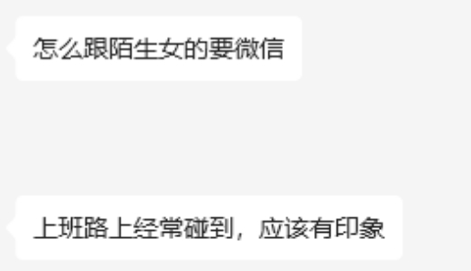 | 直接上去要微信,说不定人家也在等你主动呢。。。,大不了被拒绝,又不难为情 |