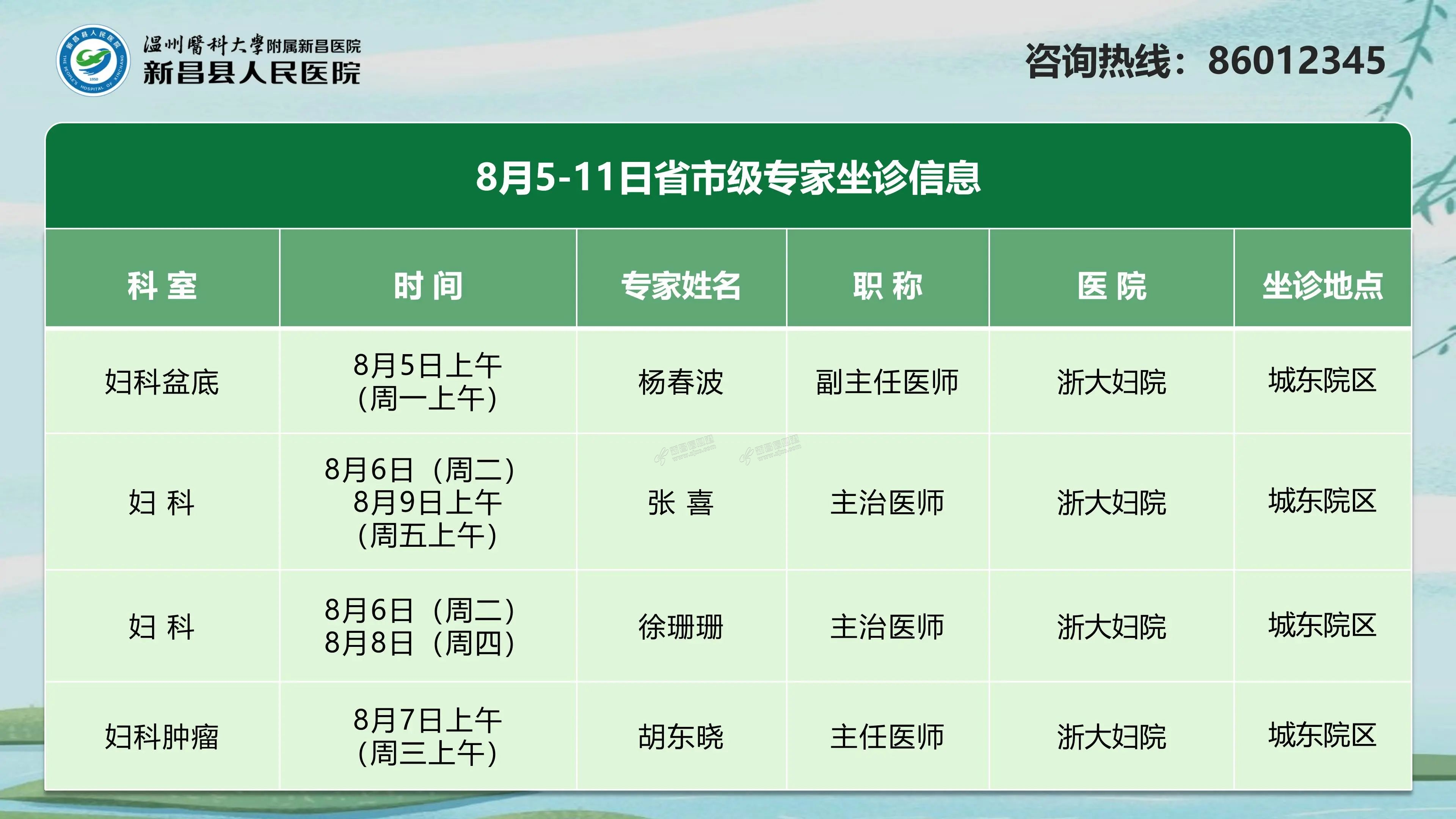 省市级专家坐诊信息 来源:新昌人医