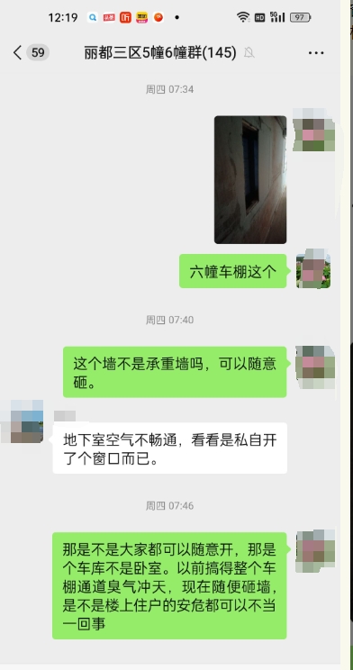 碰上这种邻居难道只能自认倒霉吗,丽都花园三区在车库墙上私自砸墙开窗。很早就在业主群反应了,中间物业可能有交涉。这位高手在墙上糊了一块薄薄的木板掩耳盗铃了几天。今早下楼那窗户好好的还在那里。这种事应该谁 ...