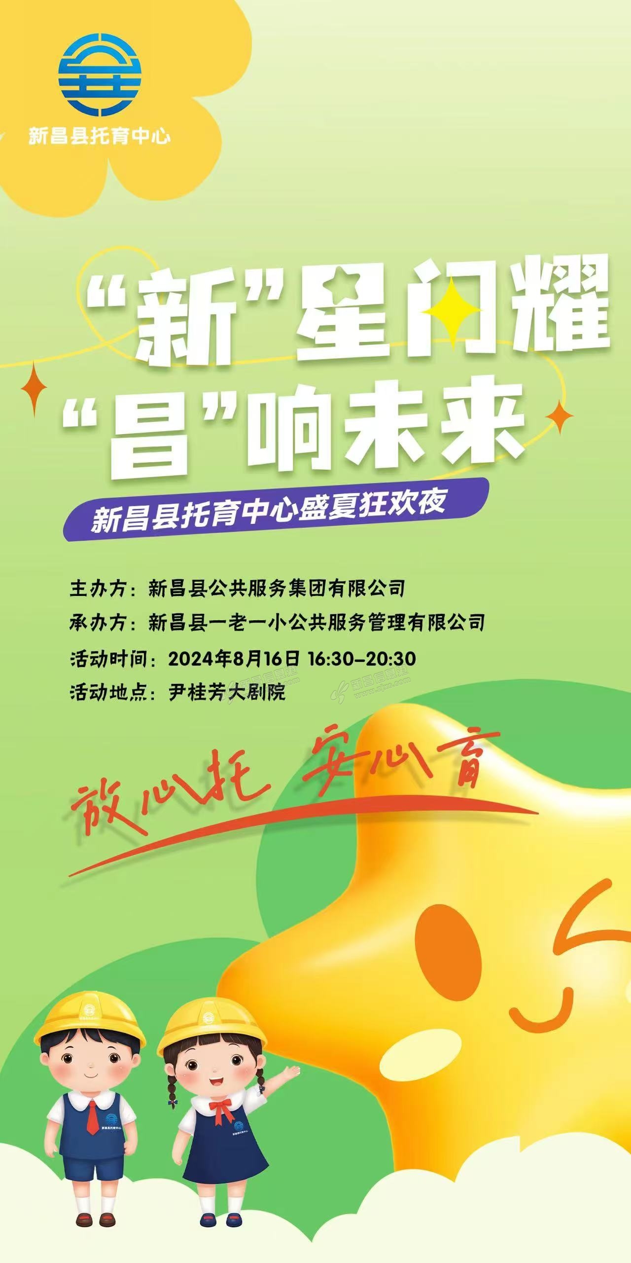 就在本周五!萌娃表演、直播抽奖……新昌县托育中心邀您共度盛夏狂欢夜! 新昌县托育中心是由县卫健局指导,县公共服务集团有限公司投资成立的绍兴市首家普惠性公办公营托育中心,目前已有6家园区投入运营,分别为 ...