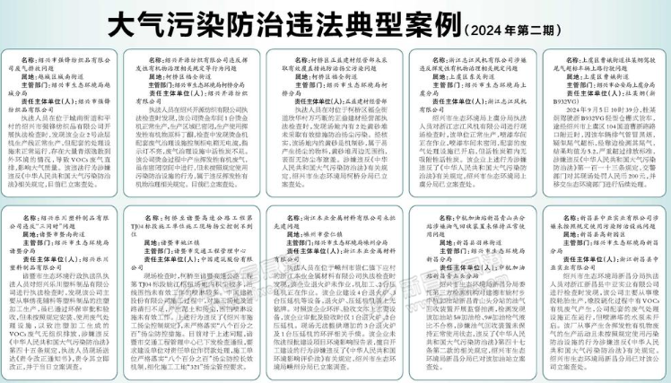 为全力打好空气质量改善攻坚战,8月12日以来,绍兴全市各地各执法机构锚定目标,主动作为,积极开展大气环境质量综合执法月行动,查处了一批突出涉气环境违法案件。为强化警示震慑,发挥典型案例的示范引领作用,现 ...