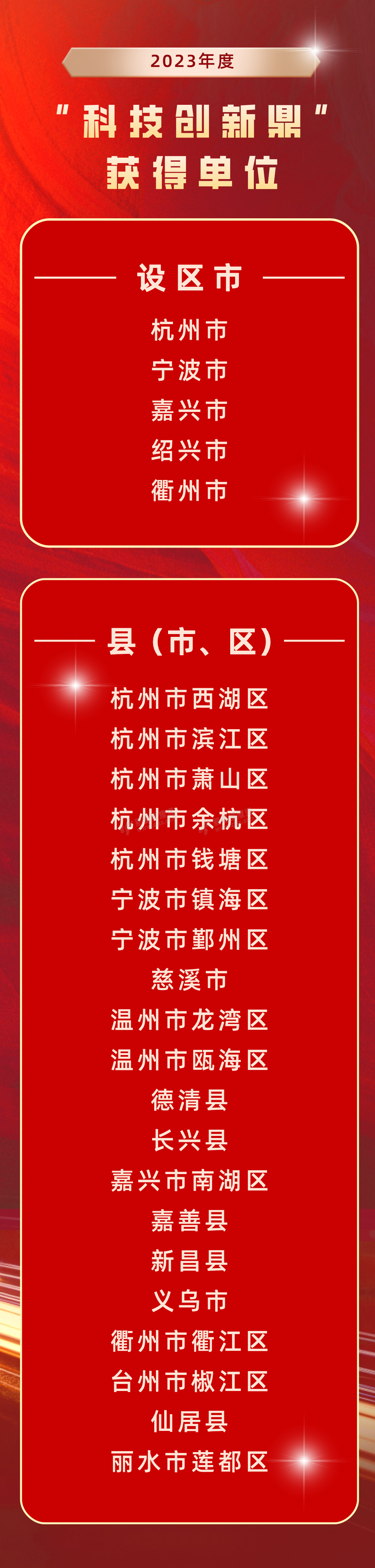 11月22日,加快建设创新浙江因地制宜发展新质生产力动员部署会暨全省科学技术奖励大会召开,会上公布了获得2023年度“科技创新鼎”优秀市、县(市、区)名单,绍兴市和绍兴新昌县光荣获鼎。 来源:浙江发 ...
