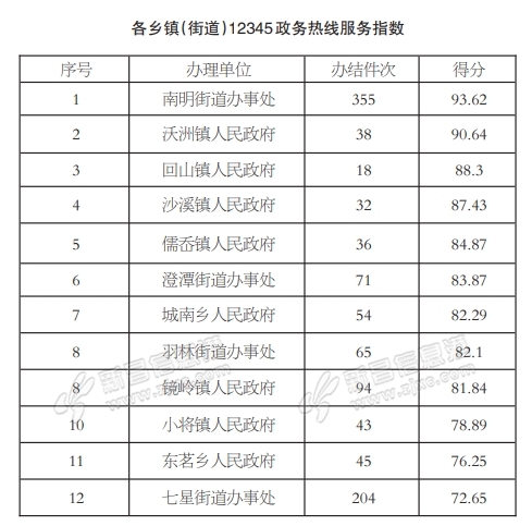 12345政务热线服务指数公布(2024年10月) 为提升“12345”政务热线事项办理质量与效率,全力助推我县“最多跑一次”改革,根据《新昌县12345政务热线服务指数媒体公开实施方案(2023年版)》的要求,现将10月12345 ...