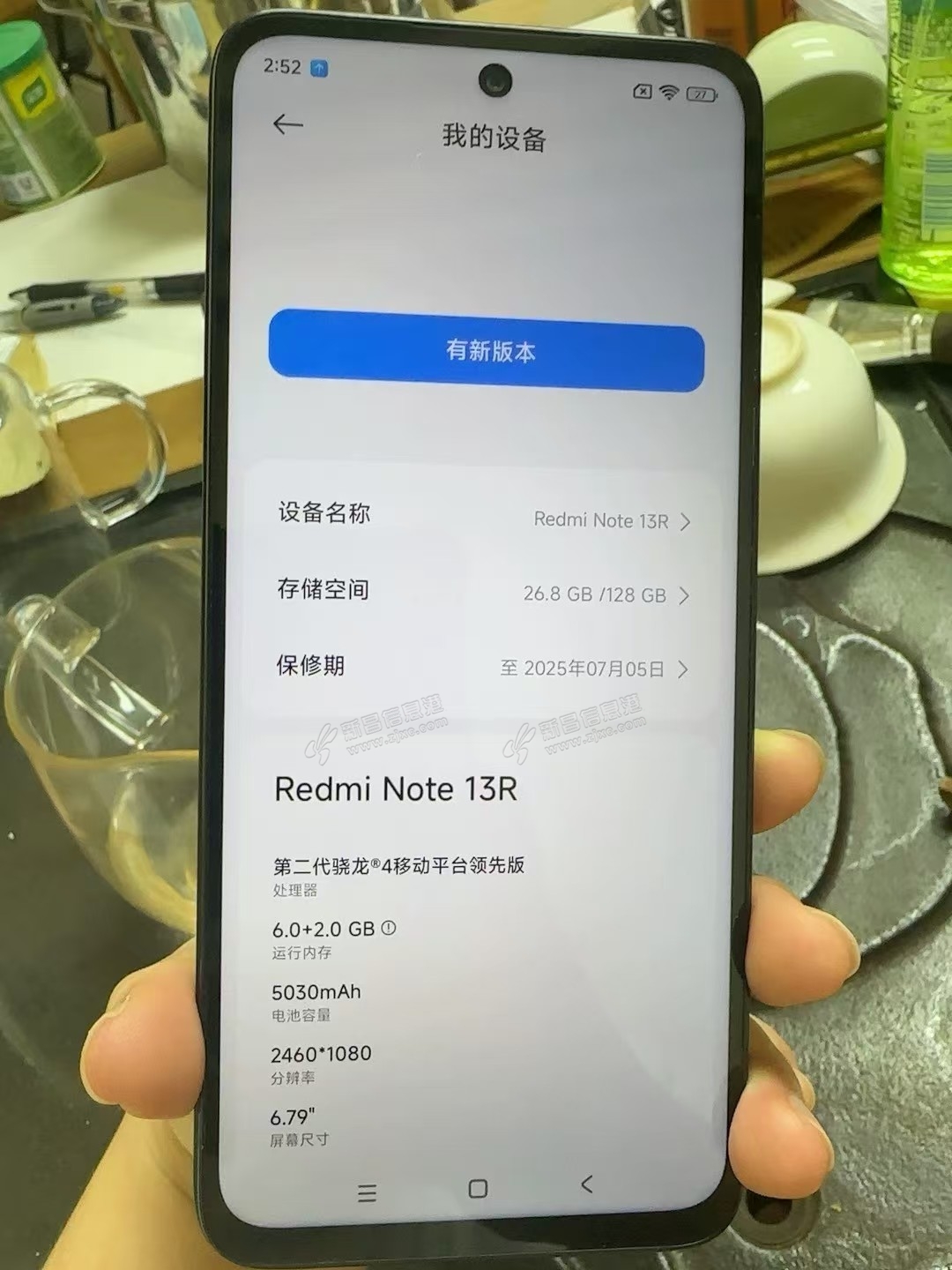 型号:红米NOTE13R ,红米NOTE13的进阶版,质保到2025.7。内存组合:6+128G,转融通技术可选择扩展2-6个G的运行内存,5G手机。高刷护眼大屏、IP53防尘、配红外遥控,颜值比较OK,给老人、小孩用或者做为备用机很完美 ...