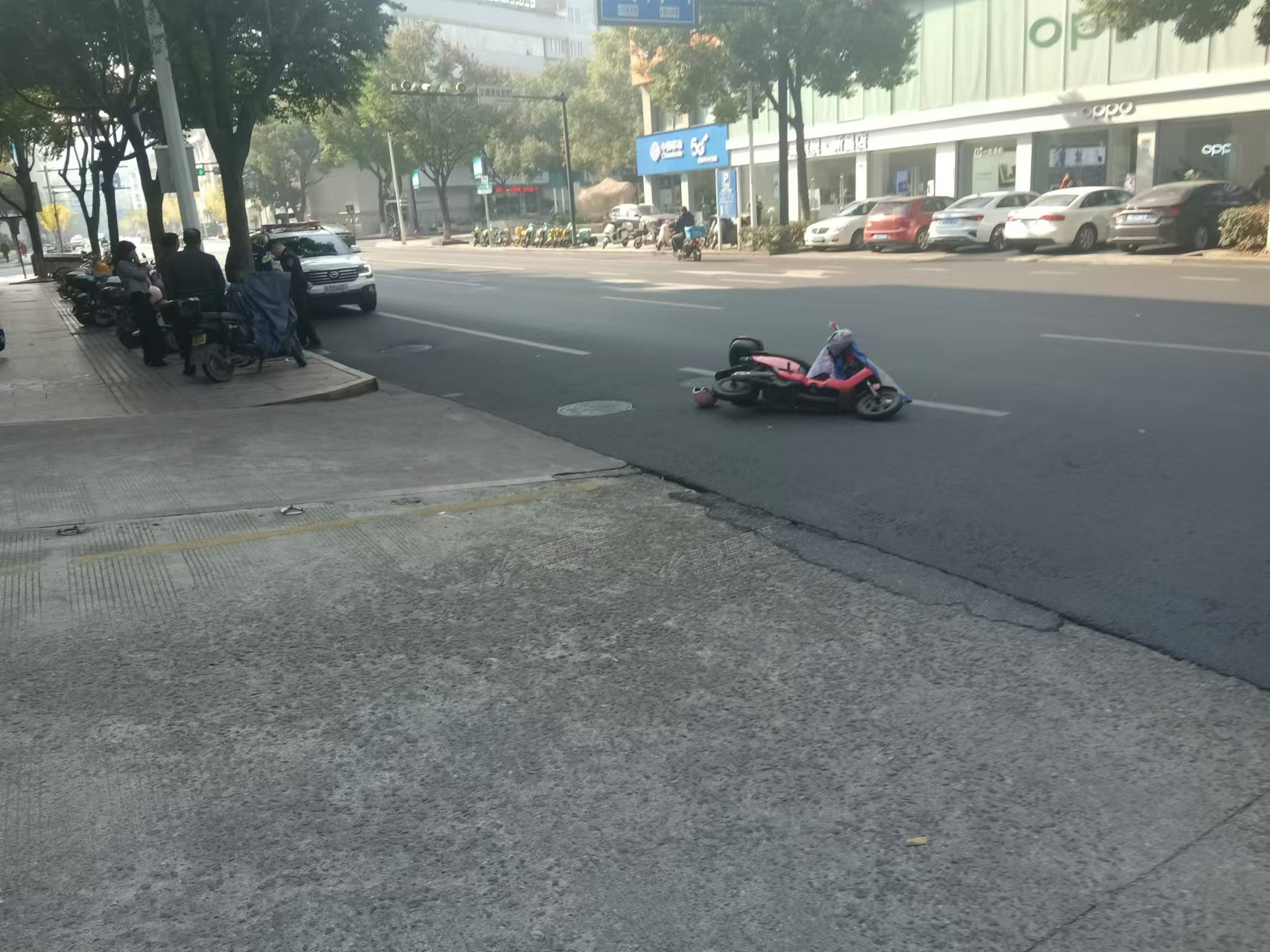 大中午的世贸这里咋啦?就看到电瓶车翻在路上了,帽子蜀黍是到位了,几个大妈围着一直在说啥。被撞跑路了??