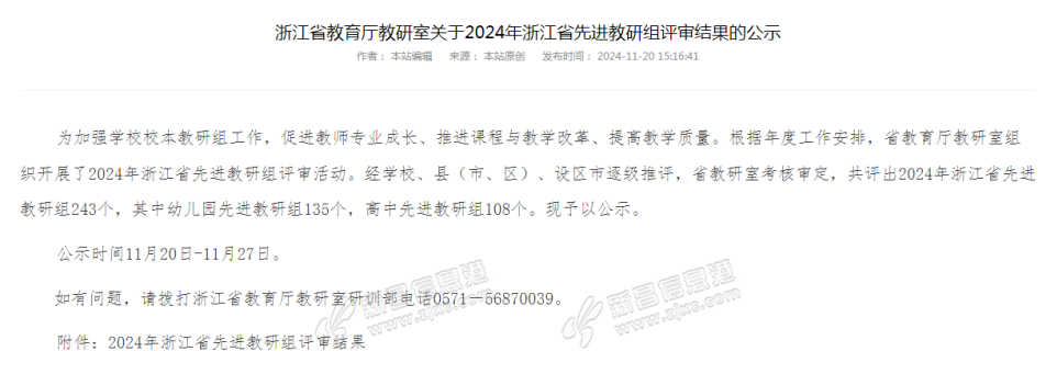 地理教研组获评浙江省先进教研组喜讯 11月20日,浙江省教育厅教研室公示2024年浙江省先进教研组评审结果,我校地理教研组获评浙江省先进教研组,这是继2020年体育教研组和2022年生物教研组获评浙江省先进教研组之后 ...
