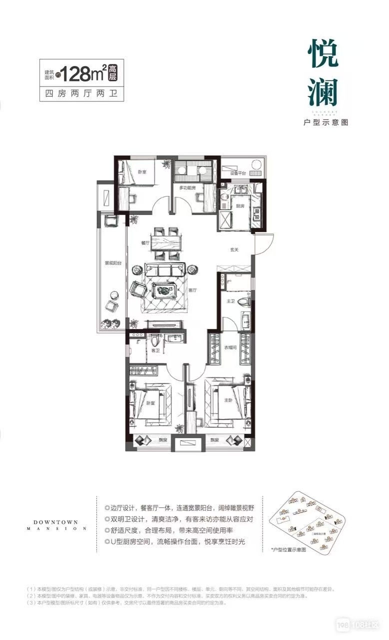 碧桂园·珺悦128㎡,④房②厅②卫 开发商精装,带车位 出售168.8万