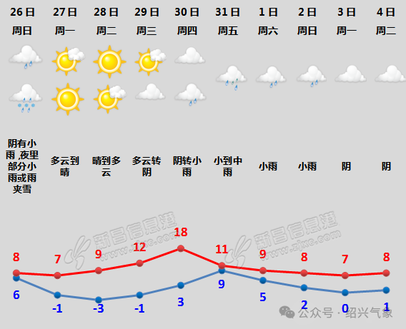今天一早,绍兴市气象台发布低温报告:受较强冷空气和辐射降温共同影响,今天早晨绍兴最低气温0℃左右,山区0~-2℃,有冰冻,预计今天白天到后天气温都较低,请注意做好防寒保暖工作。目前,新昌和嵊州发布的大风黄 ...