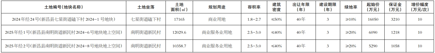 新昌县自然资源和规划局国有建设用地使用权公开拍卖出让公告新自然告字〔2025〕3号 经新昌县人民政府批准,新昌县自然资源和规划局决定于2025年3月18日,以网上拍卖方式公开出让位于新昌县七星街道磕下村 2024-1 号 ...
