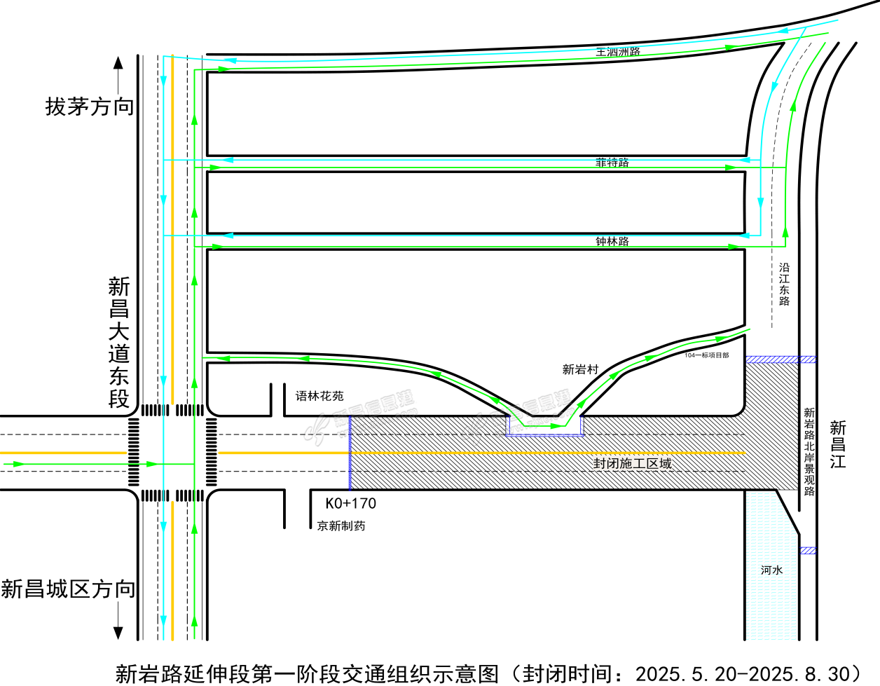 因新民片区连接线工程(G527王家园至G104连接工程)一期建设施工需要,为确保施工期间道路交通安全与施工顺利进行,根据《中华人民共和国道路交通安全法》第三十九条之规定,决定对新岩路(G527-沿江东路段)临时调 ...