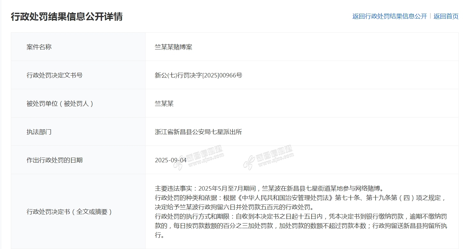 来源:浙江政务服务网 原标题:行政处罚