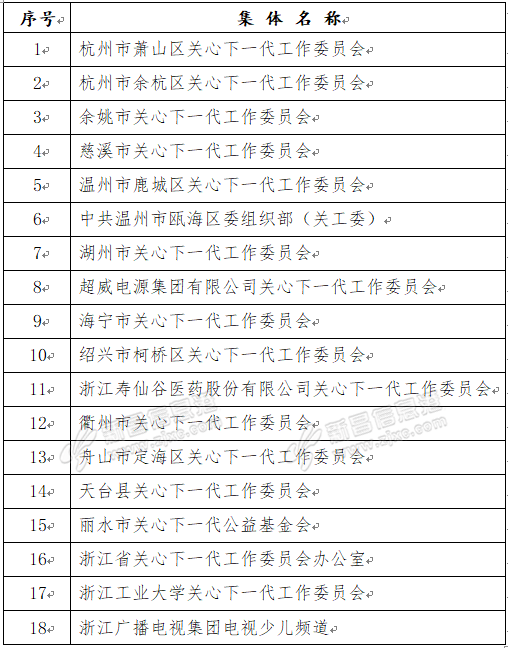 18日,记者从浙江省关工委获悉,在最新公布的全国关心下一代工作先进集体、先进工作者表彰名单中,我省共有18个集体被授予“全国关心下一代工作先进集体”称号,48人被授予“全国关心下一代工作先进工作者”称号。 ...