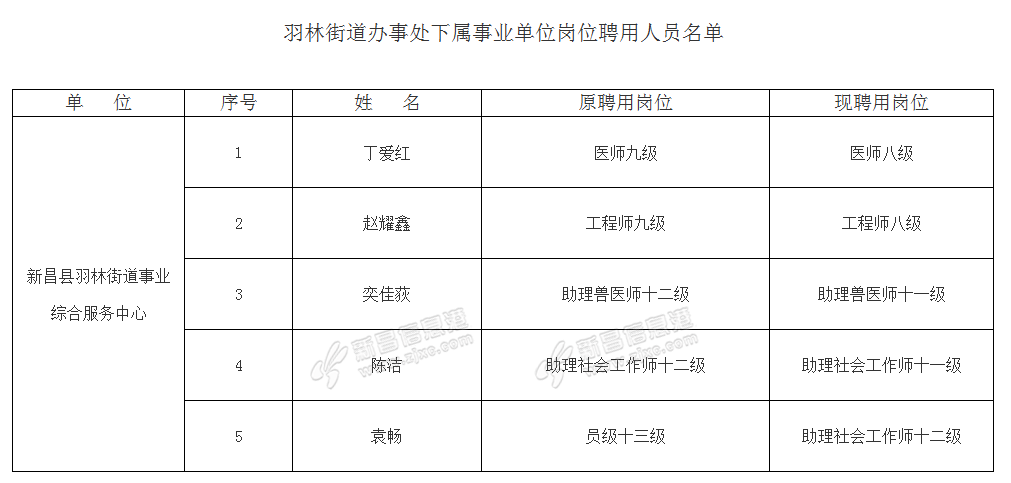 各单位: 根据新昌县人社局关于羽林街道下属事业单位岗位设置和羽林街道下属事业单位可聘岗位数量的核准批复,经街道党政联席会审核研究,决定对丁爱红等同志进行岗位聘用(名单附后),聘期自2025年9月16日至2027 ...