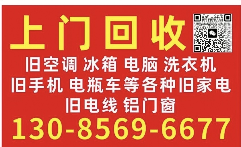 高价上门回收,废旧空调,冰箱,电脑,电视机,洗衣机,旧手机,坏手机。破电瓶车,废铜,废铝,铝合金门窗,旧电线等等。电话13085696677微信同号。 联系人: 废旧回收