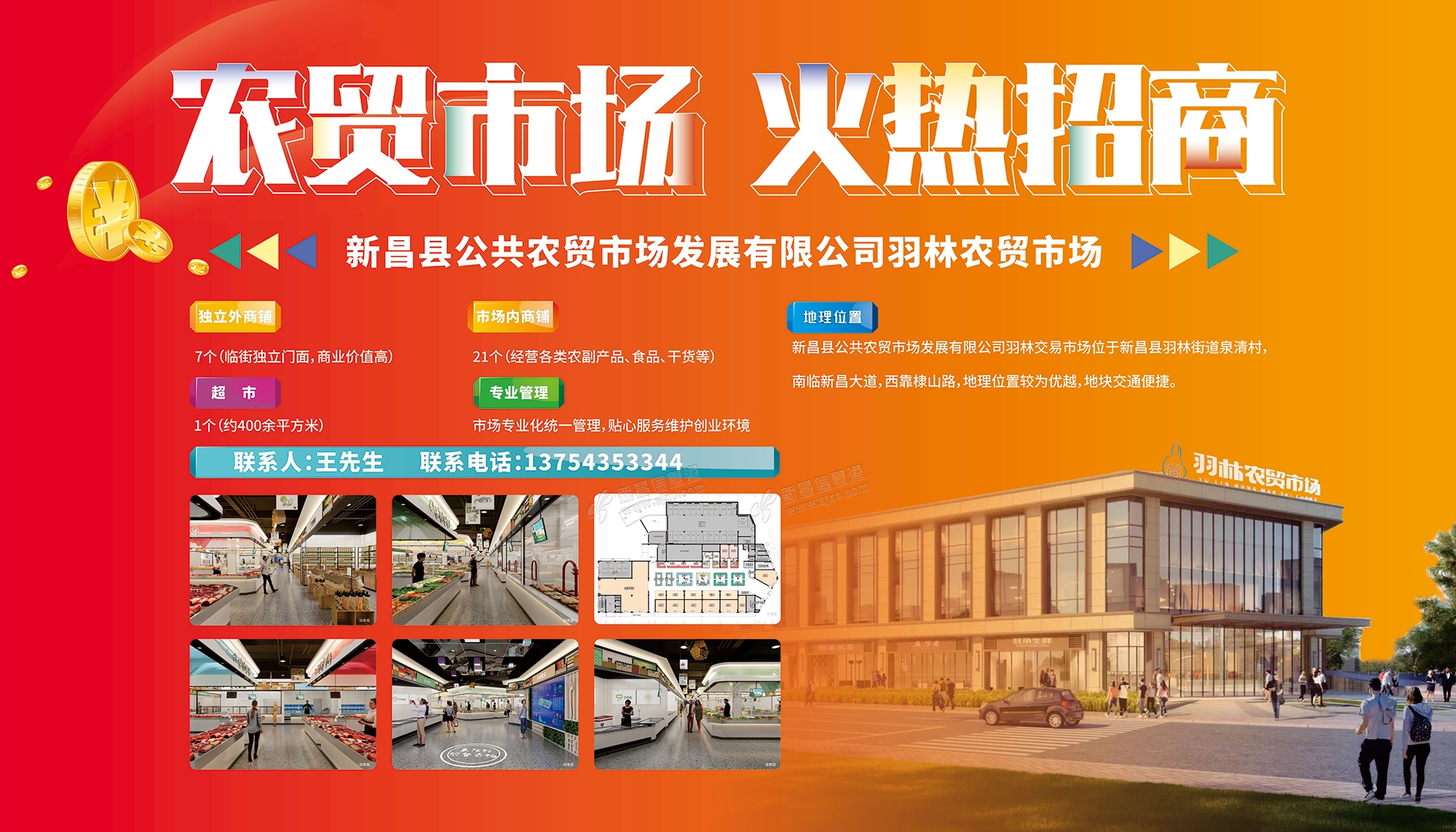新昌县公共农贸市场发展有限公司羽林农贸市场招商公告 新昌县公共农贸市场发展有限公司羽林农贸市场位于新昌县羽林街道泉清村,南临新昌大道,西靠棣山路,地理位置较为优越,地块交通便捷。本市场计划将于近 ...