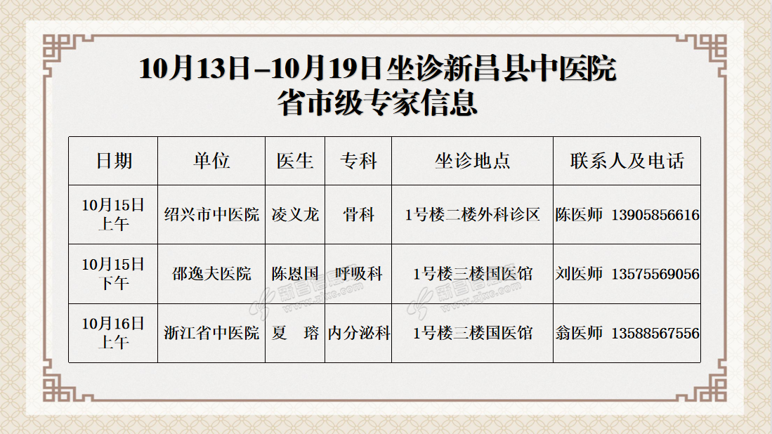 温 馨 提 示新昌县中医院连贯医疗服务中心预约电话0575-86502366 门诊时间:上午08:00——11:30 下午13:30——17:00 急诊内、外、儿科及发热门诊24小时开放。 来源:新昌县中医院